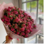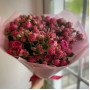 На фото монобукет из розовой кустовой розы. В составе: кустовая роза 13 шт, крафт-бумага 1 шт, атласная лента 1 шт, . Все цветы свежие и ароматные, букет красиво оформлен и отлично подходит для подарка. Доступна доставка цветов или самовывоз.
